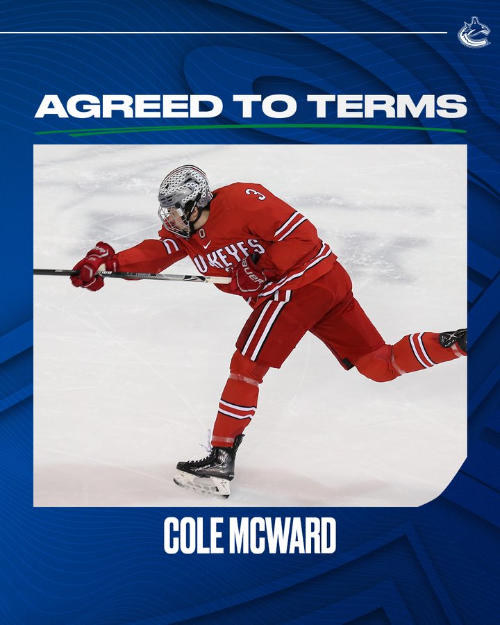 Dhaliwal Canucks Are Not Done With Ncca Signings They Are In The Mix To Land 21 Year Old Right Shot Defenseman Cole Mcward From Ohio State Van Could Be A Front Runner To